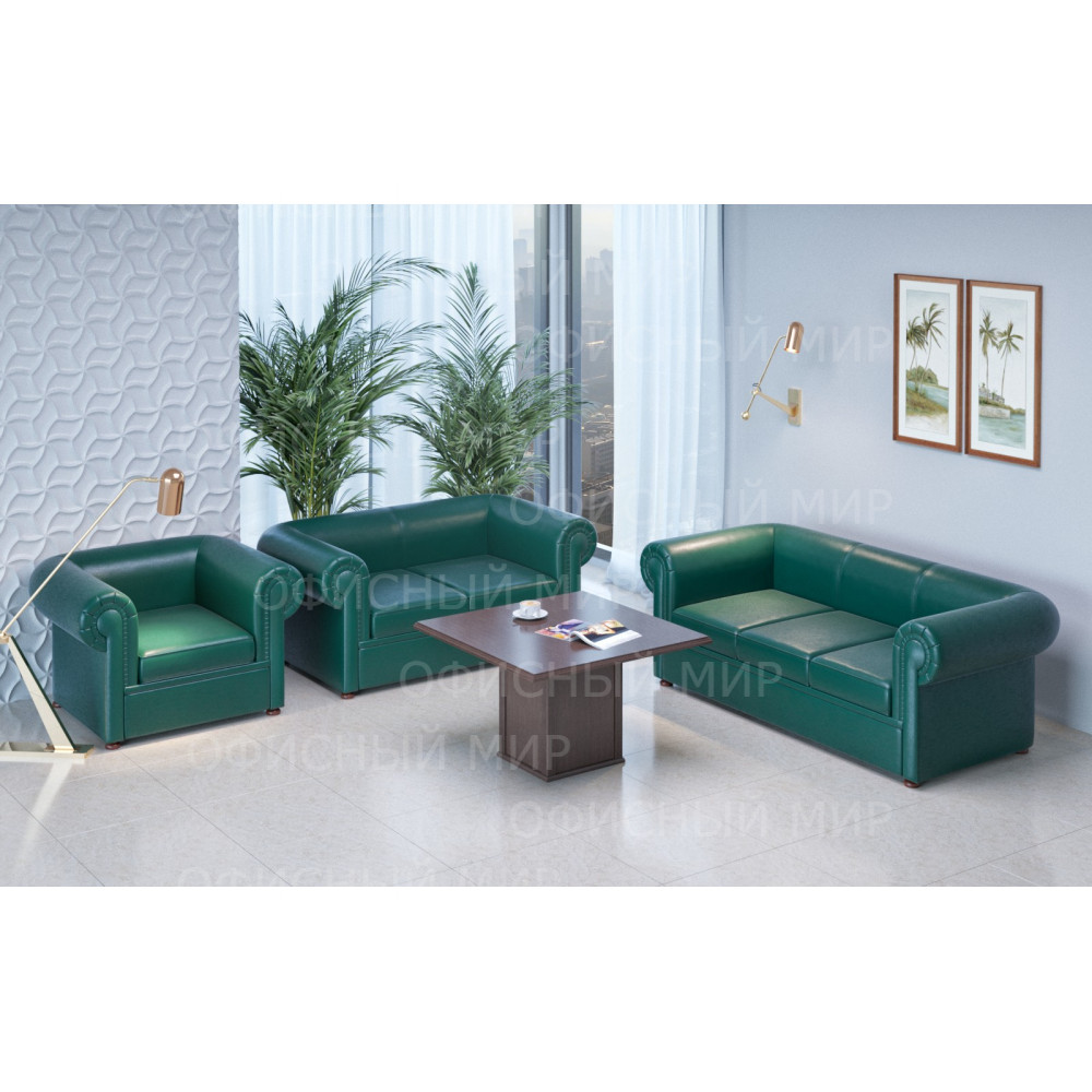 Кресло выполнено из высококачественной искусственной кожи. В каркасе используются стальные пружины «зиг-заг». В рамках сидений используются армированные ремни ОКЕ. Раскладными механизмами не оснащается. Габариты посадочного места (ШxГ) 640×600 мм. Высота спинки от посадочного места 330 мм. Вес в упаковке 51 кг. Комплектуется фигурными деревянными опорами из массива бука, высота 60 мм, D = 90 мм. Высота сиденья 460 мм.
