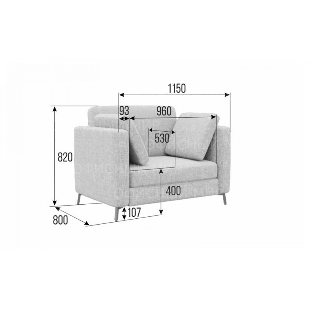 Brasco Диван одноместный BRS-1 Alia 3/Металл Черный 1150*800*840