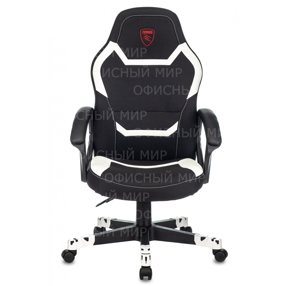 Кресло игровое Zombie 10 черный/белый ткань/эко.кожа крестов. пластик
