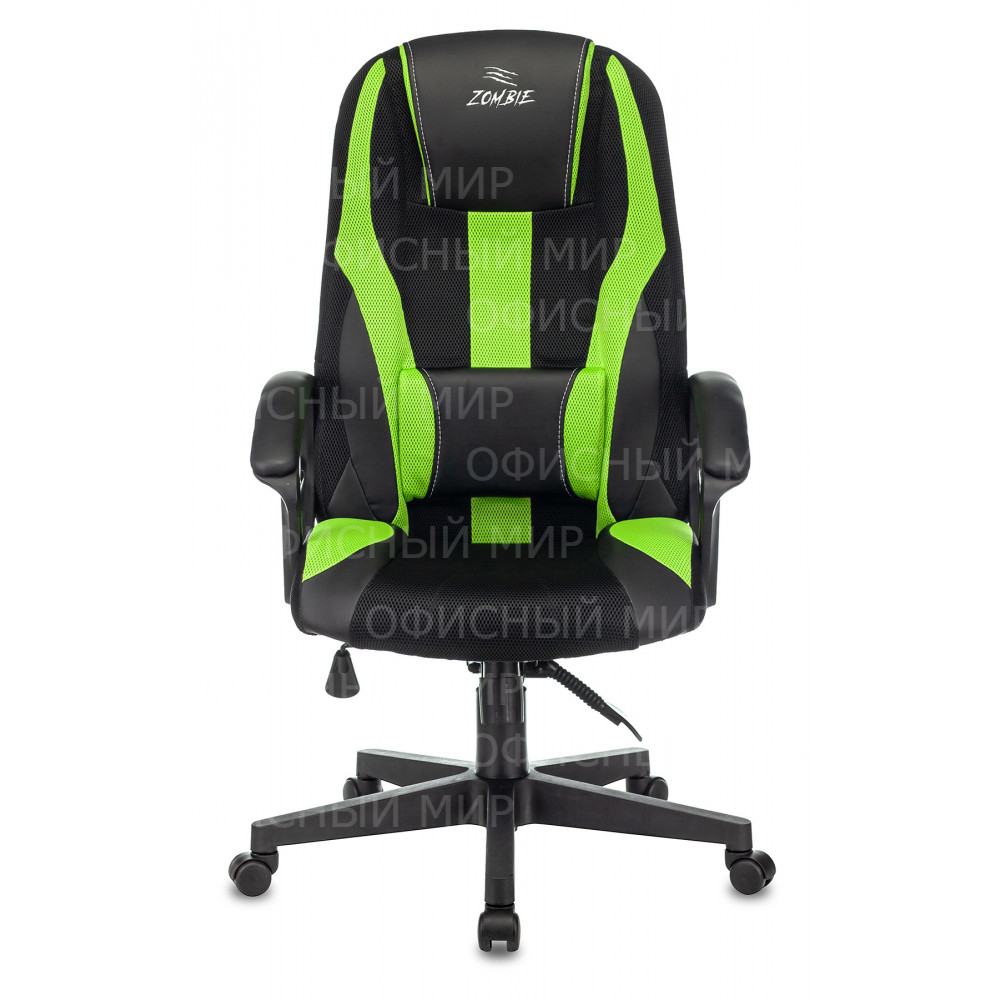 Кресло игровое Zombie 9 черный/салатовый ткань/эко.кожа крестов. пластик