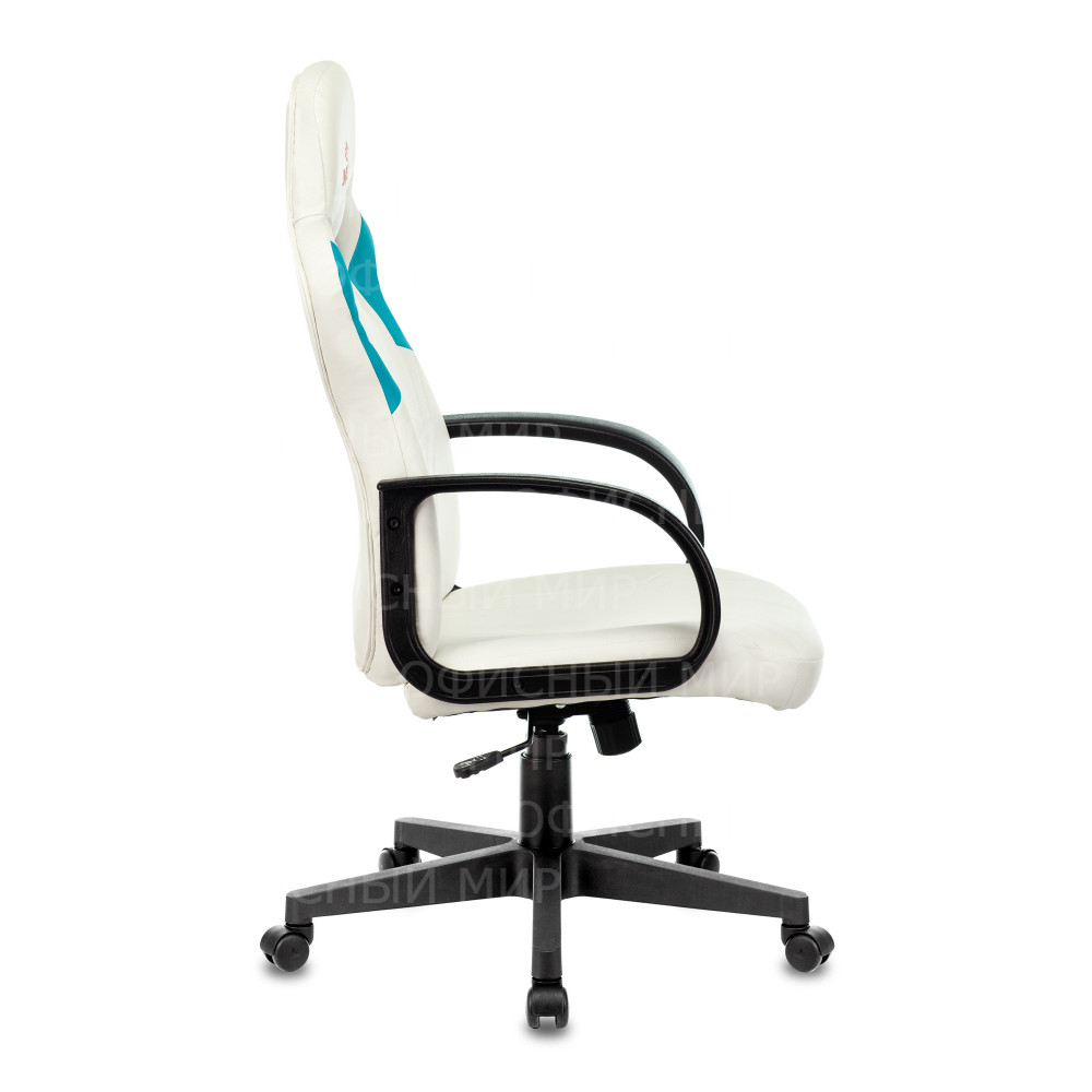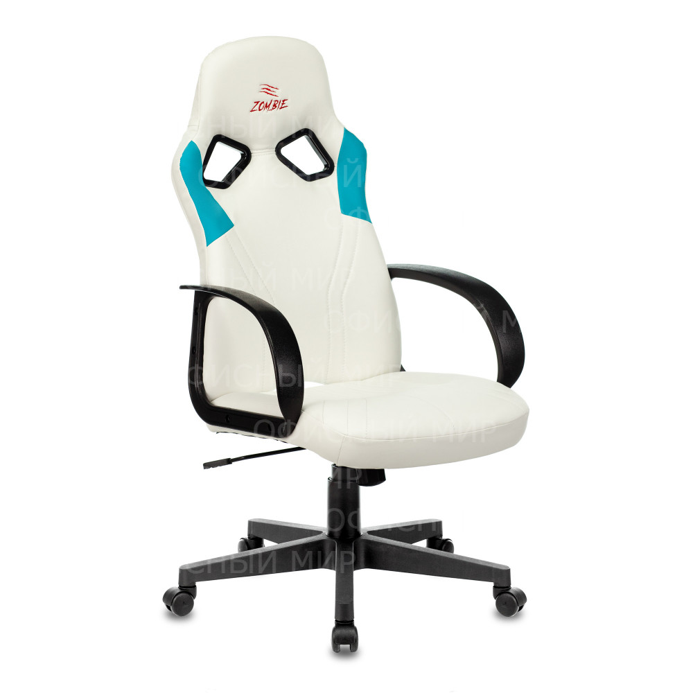Кресло игровое Zombie RUNNER белый/голубой экокожа крестов. пластик