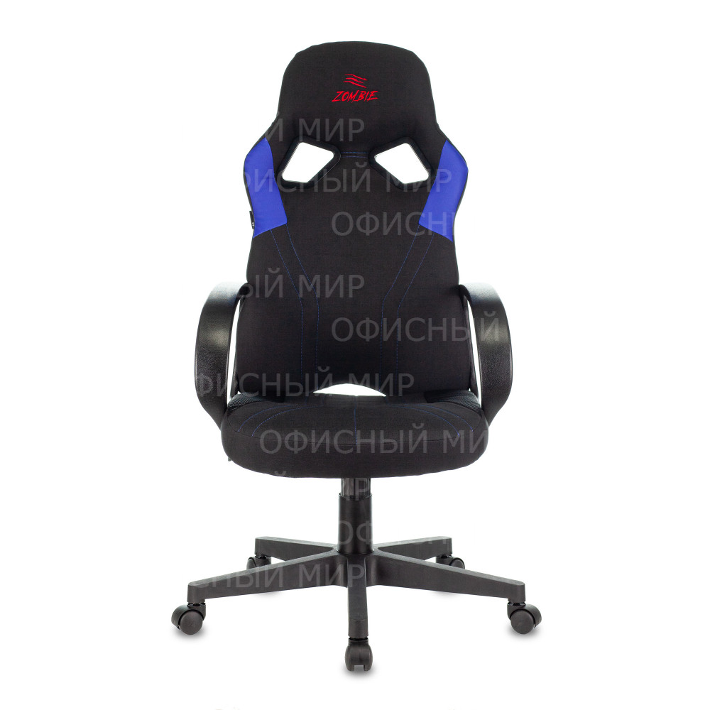 Кресло игровое Zombie RUNNER черный/синий ткань/эко.кожа крестов. пластик