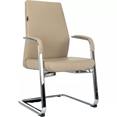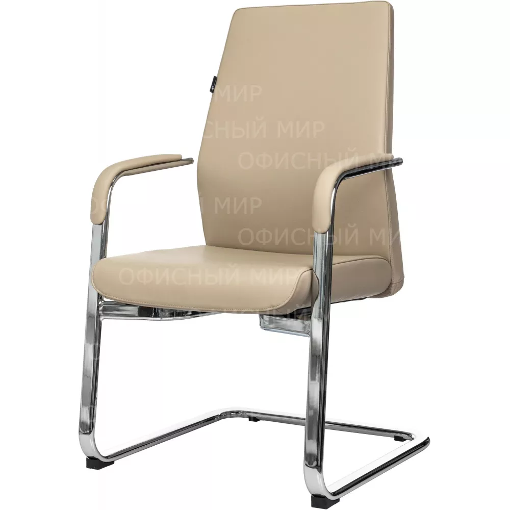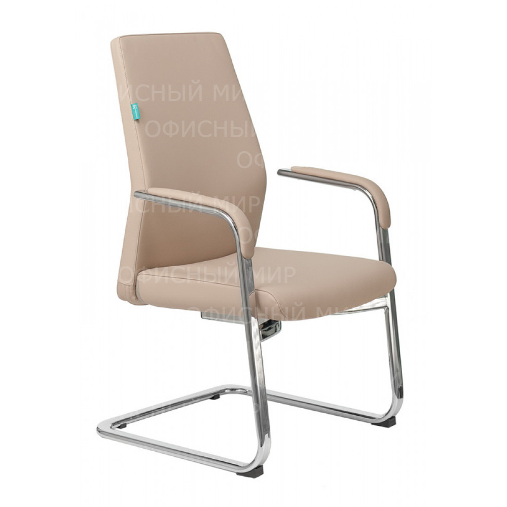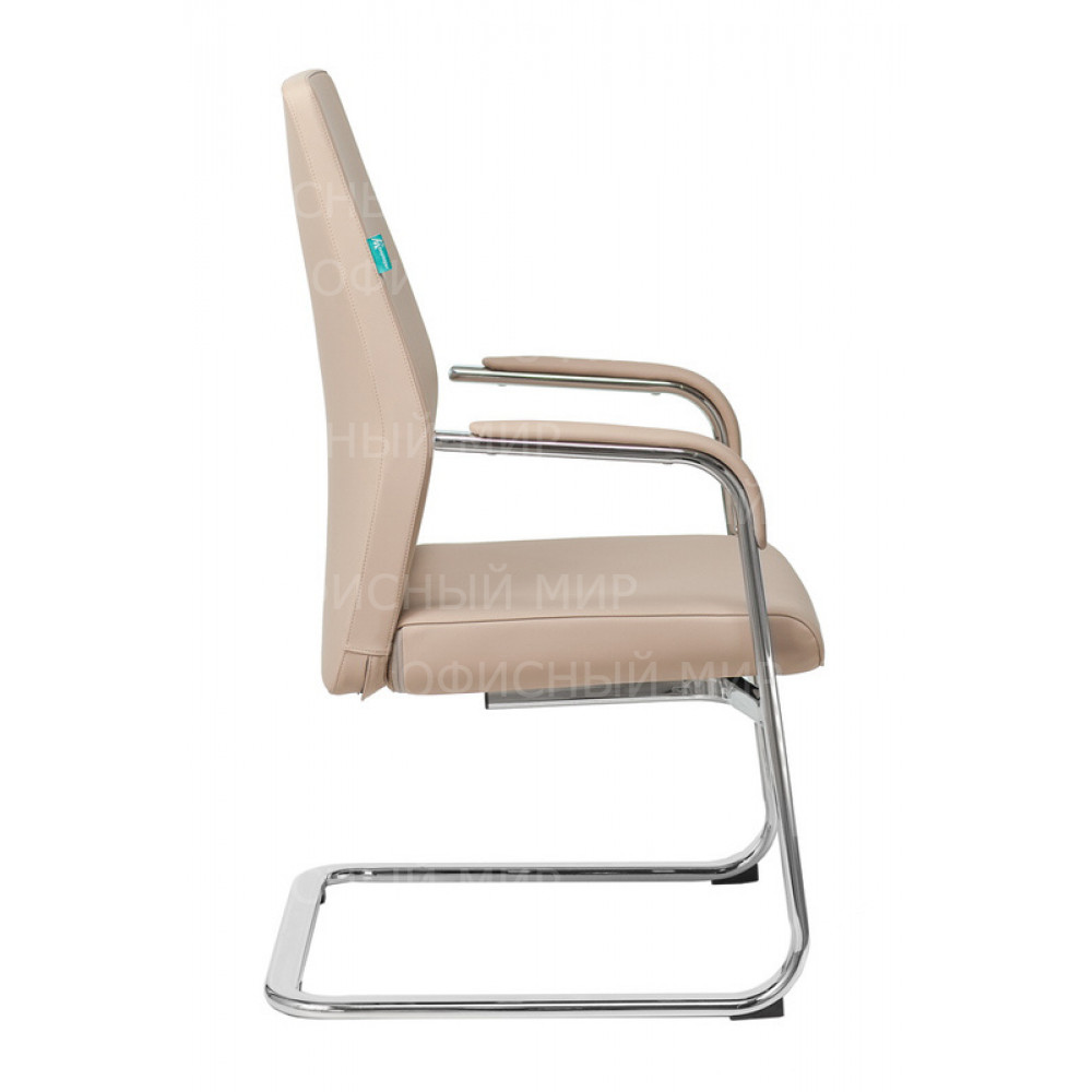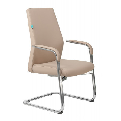 Кресло Бюрократ _JONS-LOW-V бежевый кожа низк.спин. полозья металл хром