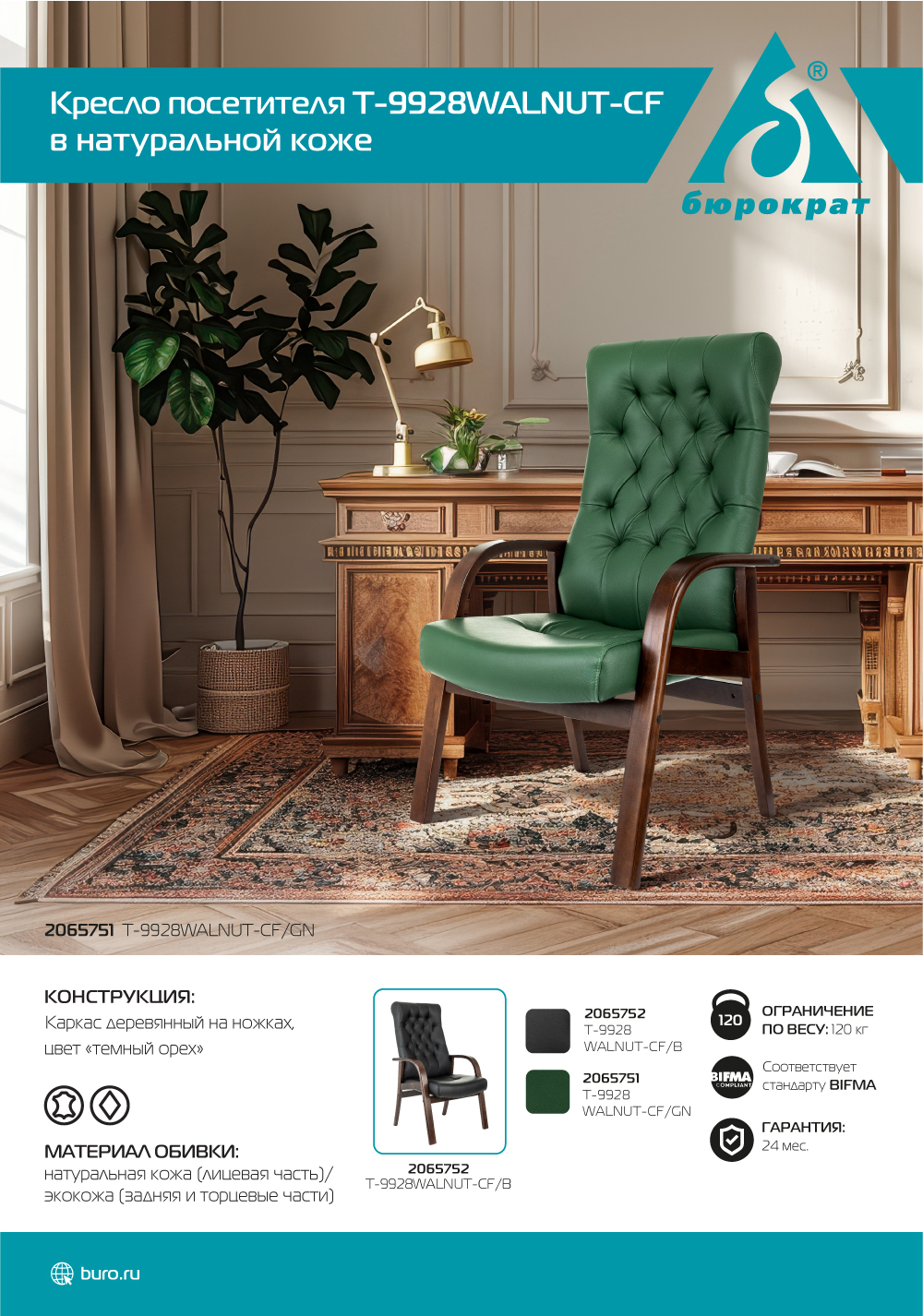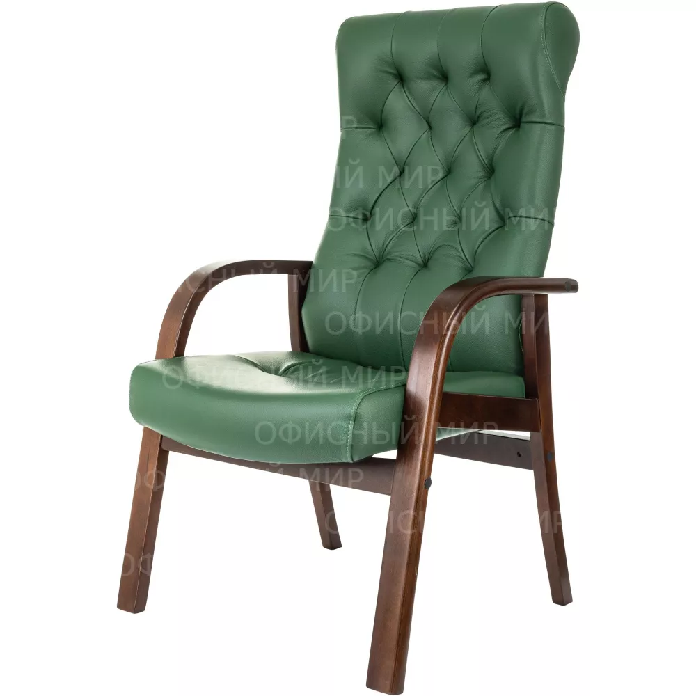 Кресло Бюрократ T-9928WALNUT-CF зеленый кожа на ножках дерево