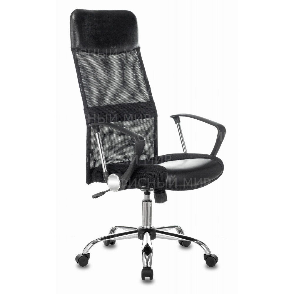 Кресло руководителя Бюрократ CH-600SL черный экокожа/сетка крестов. металл хром