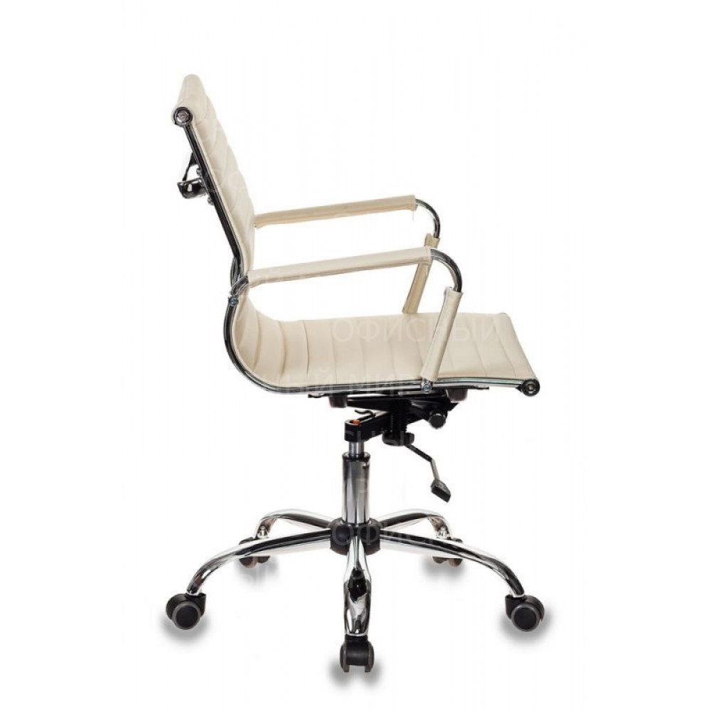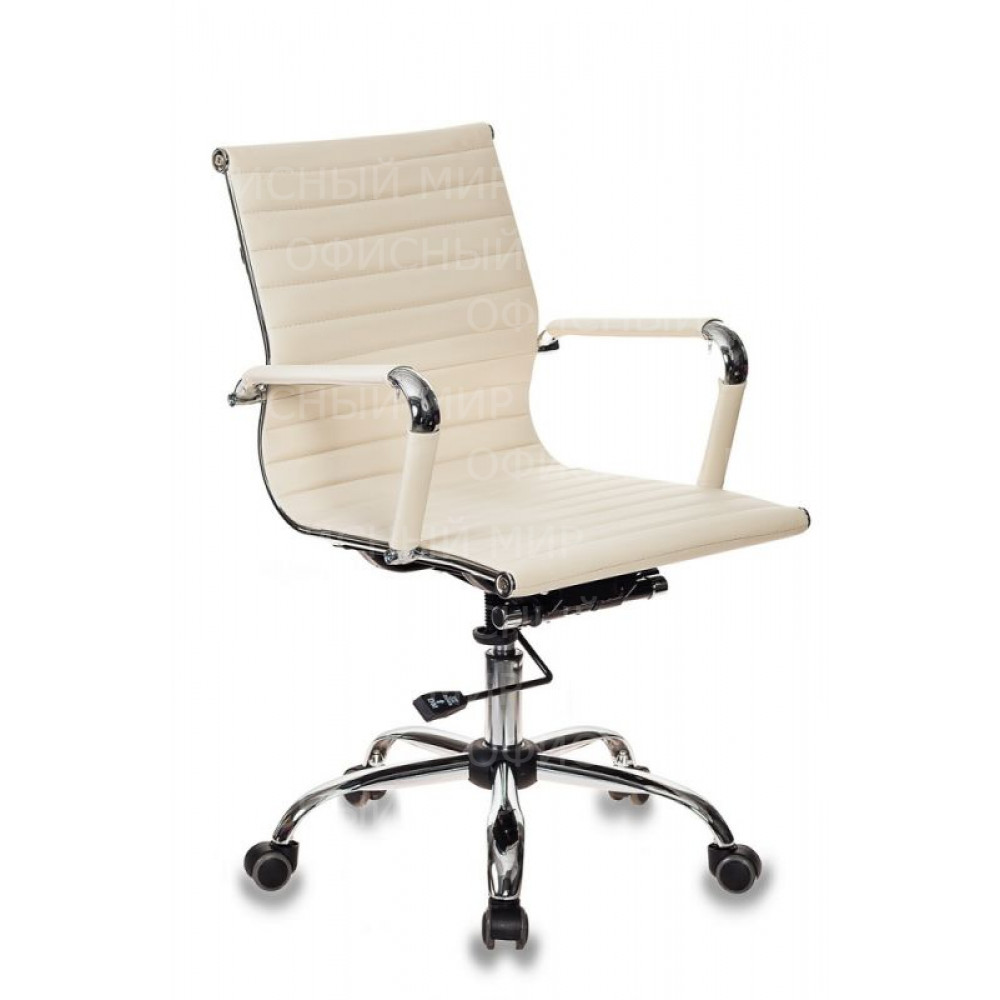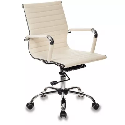 Кресло руководителя Бюрократ CH-883-LOW слоновая кость экокожа низк.спин. крестов. металл хром