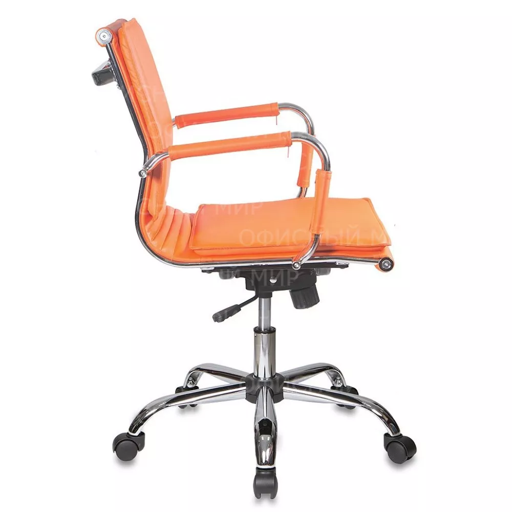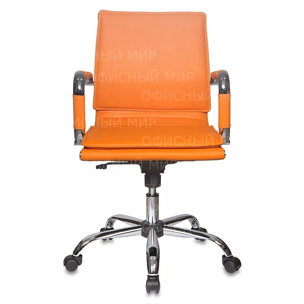 Кресло руководителя Бюрократ CH-993-Low оранжевый экокожа низк.спин. крестов. металл хром