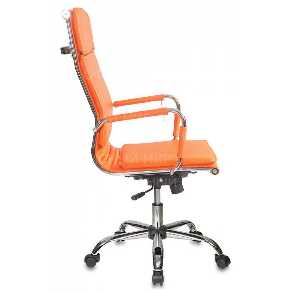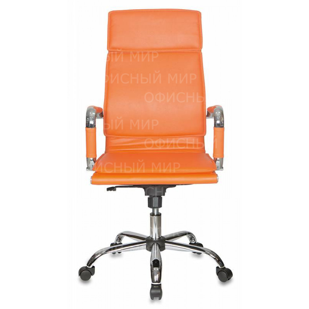 Кресло руководителя Бюрократ CH-993 оранжевый экокожа крестов. металл хром