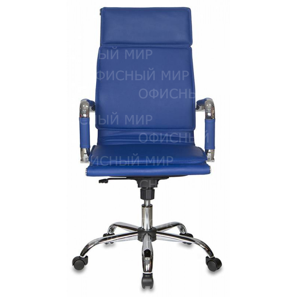Кресло руководителя Бюрократ CH-993 синий экокожа крестов. металл хром