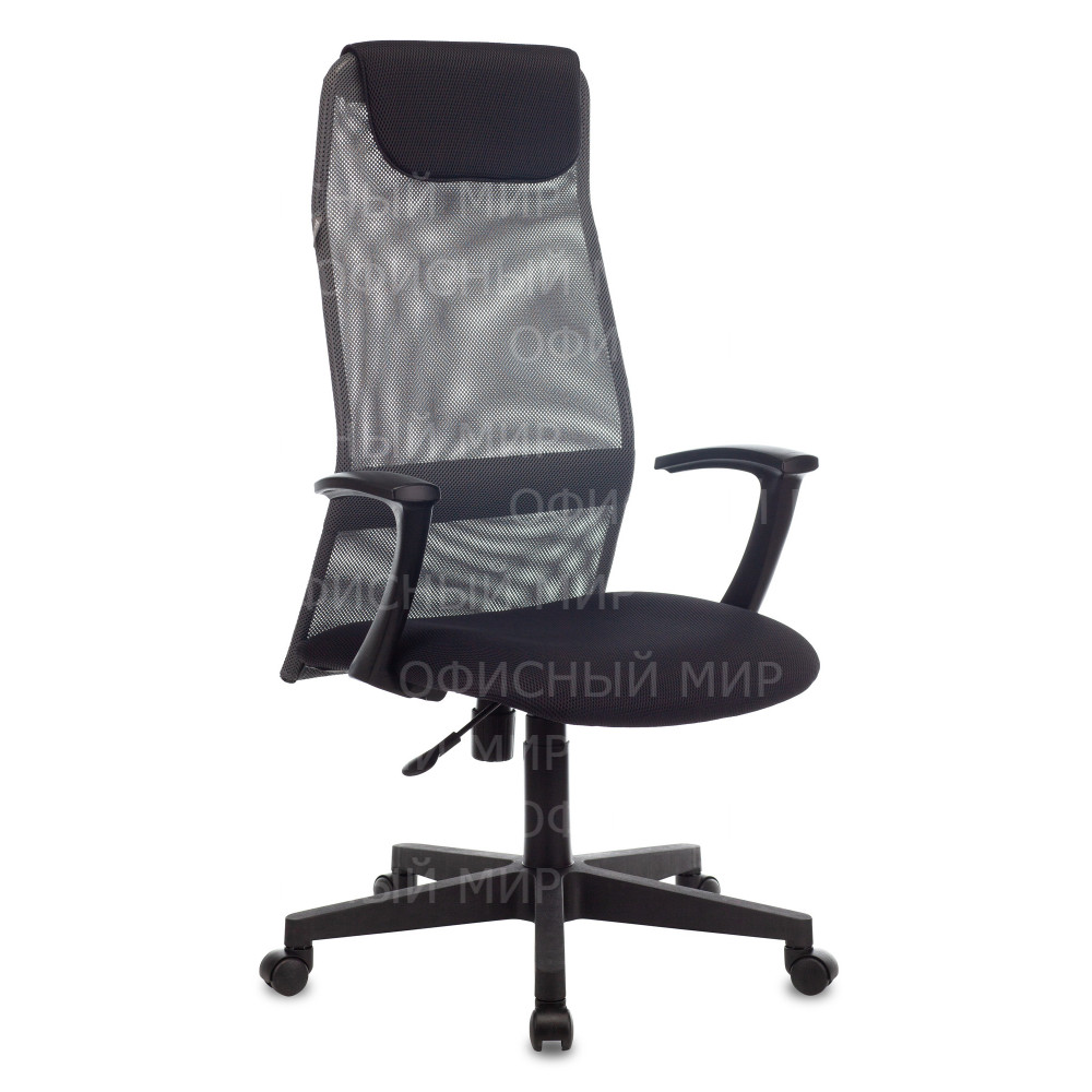 Кресло руководителя Бюрократ KB-8 темно-серый TW-04 TW-12 сетка/ткань с подголов. крестов. пластик
