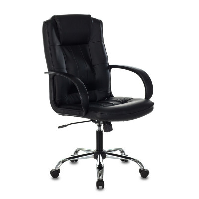 Кресло руководителя Бюрократ T-800N черный кожа крестов. металл хром