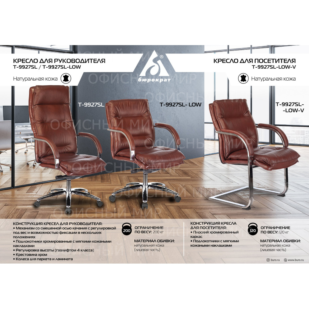 габариты (мм): 875 х 380 х 670 Ширина сиденья: 530 мм Серия: T Бренд: БЮРОКРАТ Высота подлокотника MIN: 220 мм Механизм качания: ДА Цвет обивки: светло-коричневый Тип подлокотников: хромированные с мягкими кожаными накладками Цвет (спинка): светло-коричневый Регулировка под вес: ДА Высота сиденья MIN: 485 мм Произведено в РФ: ДА Глубина сиденья MIN: 500 мм Тип: Кресло руководителя Ограничение по весу: 200 кг Диаметр креста: 700 мм Материал основания: металл Диаметр колес: 50 мм Крестовина: хромированная Спинка: отдельная от сиденья Тип механизма качания: с фиксацией в нескольких положениях Тип основания: на колесиках Высота с подлокотниками MIN: 720 мм Ширина с подлокотниками: 600 мм Особенности: функция "антишок" - плавно возвращает спинку после снятия блокировки качания Функция «Антишок»: ДА Цвет каркаса: хром PartNumber/Артикул Производителя: T-9927SL/CHOKOLATE Материал обивки: кожа Габариты упаковки (ед) ДхШхВ: 0.87x0.38x0.66 м Подлокотники: ДА Материал колес: с накладкой PU Объем упаковки (ед): 0.218196 м3 Высота кресла/стула MIN: 1225 мм Модель: T-9927SL Регулировка высоты (газлифт): ДА