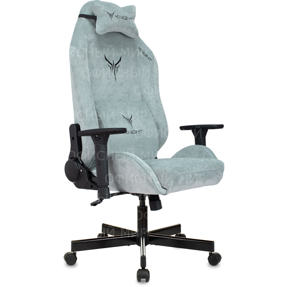 Кресло игровое Knight N1 Fabric серо-голубой Light-28 с подголов. крестов. металл
