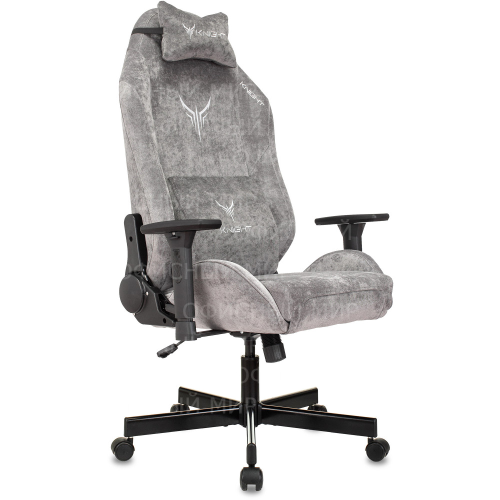 Кресло игровое Knight N1 Fabric серый Light-19 с подголов. крестов. металл