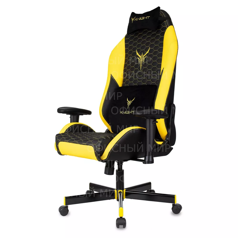 Кресло игровое Knight Neon черный/желтый соты экокожа с подголов. крестов. металл