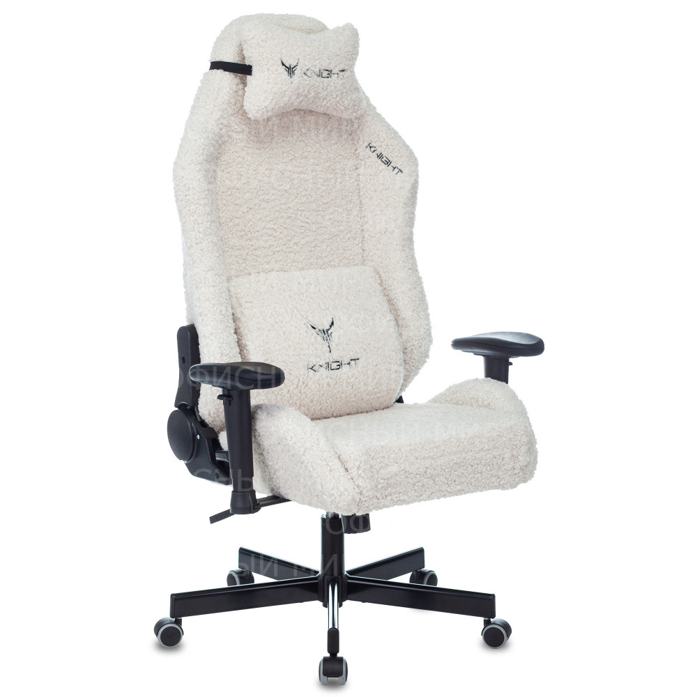 Кресло игровое Knight T1 молочный экомех с подголов. крестов. металл