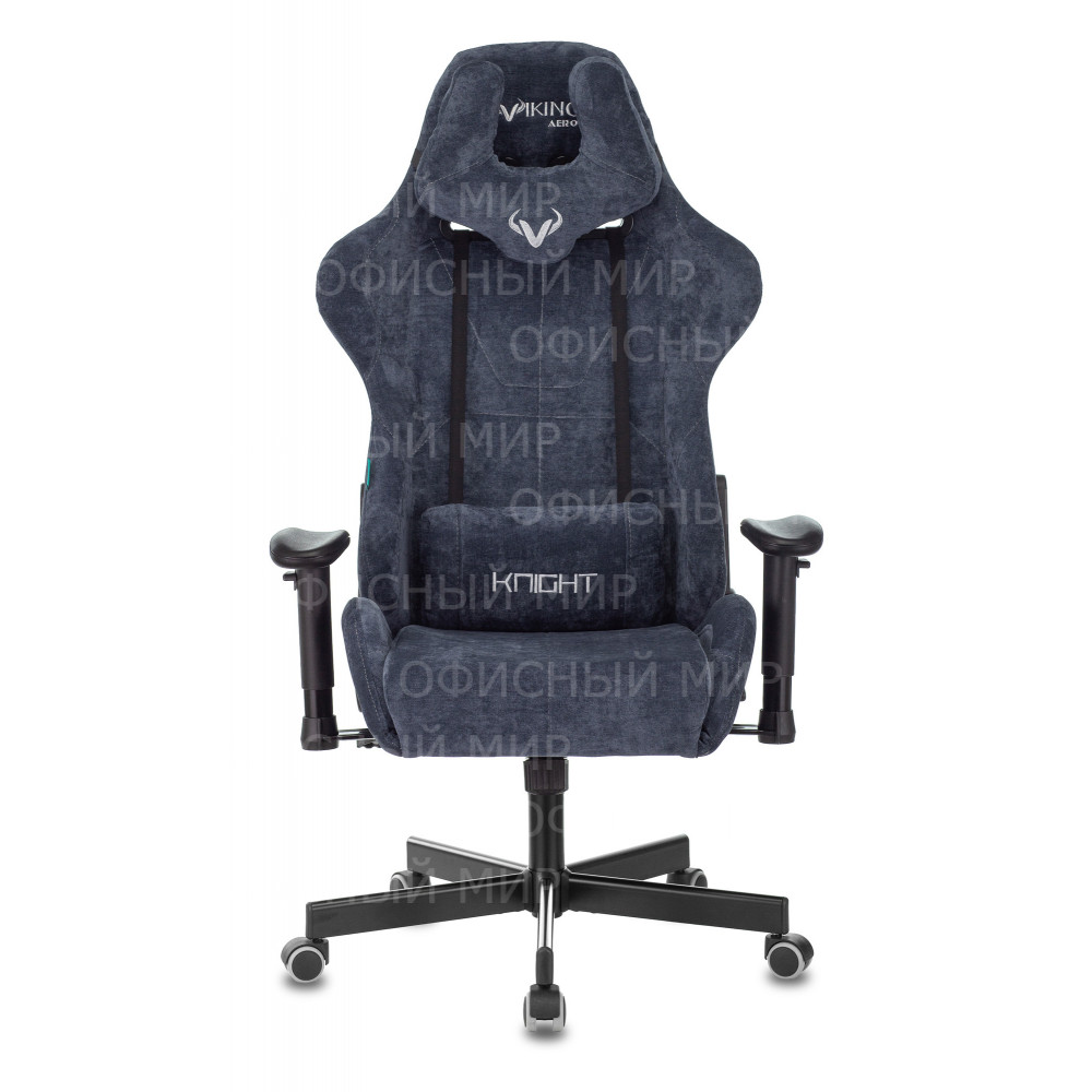 Кресло игровое Zombie VIKING KNIGHT Fabric синий Light-27 с подголов. крестов. металл