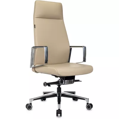 Кресло руководителя Бюрократ _JONS бежевый кожа крестов. алюминий