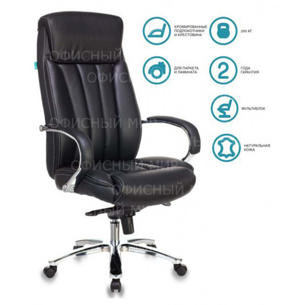 Кресло руководителя Бюрократ T-9922SL черный кожа крестов. металл хром