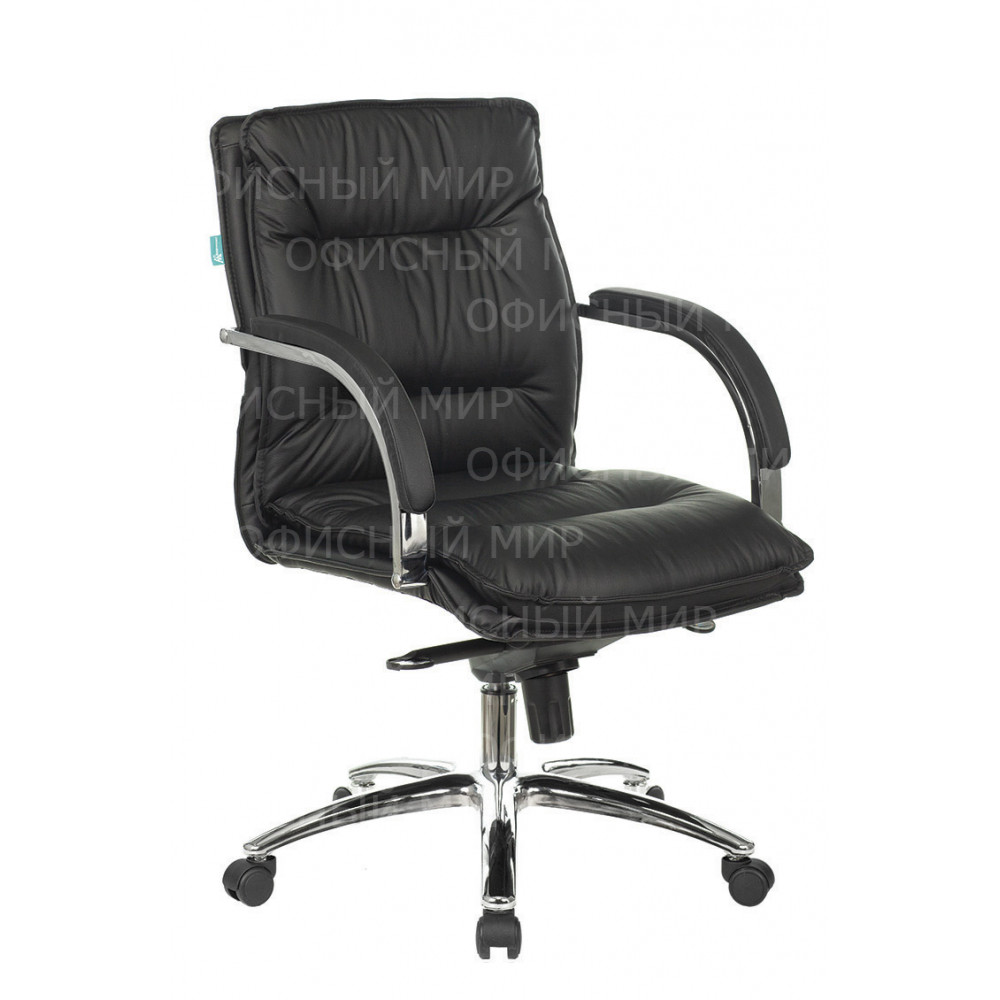Кресло руководителя Бюрократ T-9927SL-LOW черный кожа низк.спин. крестов. металл хром