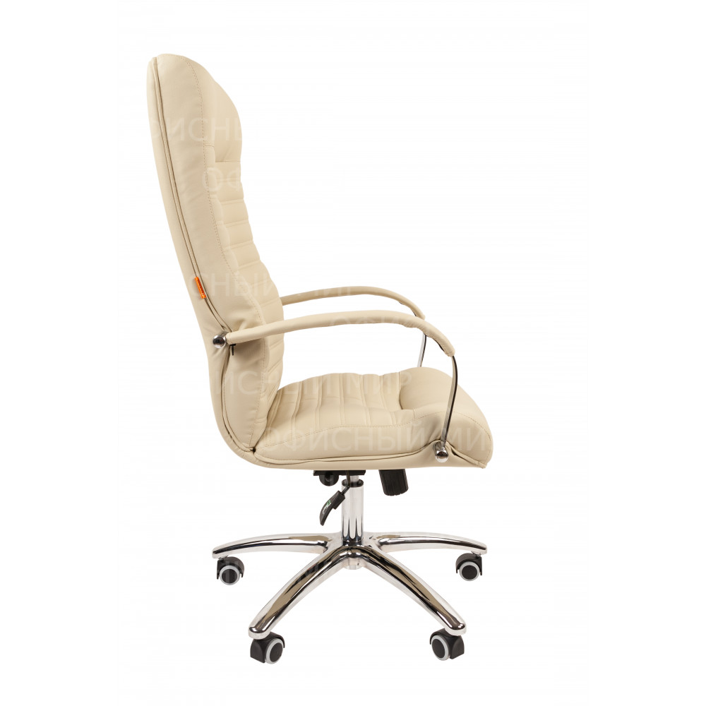 Стильное, необычное кресло руководителя. Его горизонтальный геометрический рисунок эффектно оттеняется хромированными элементами конструкции, а высокая эргономика достигается за счет анатомической формы и механизма качания повышенной комфортности.