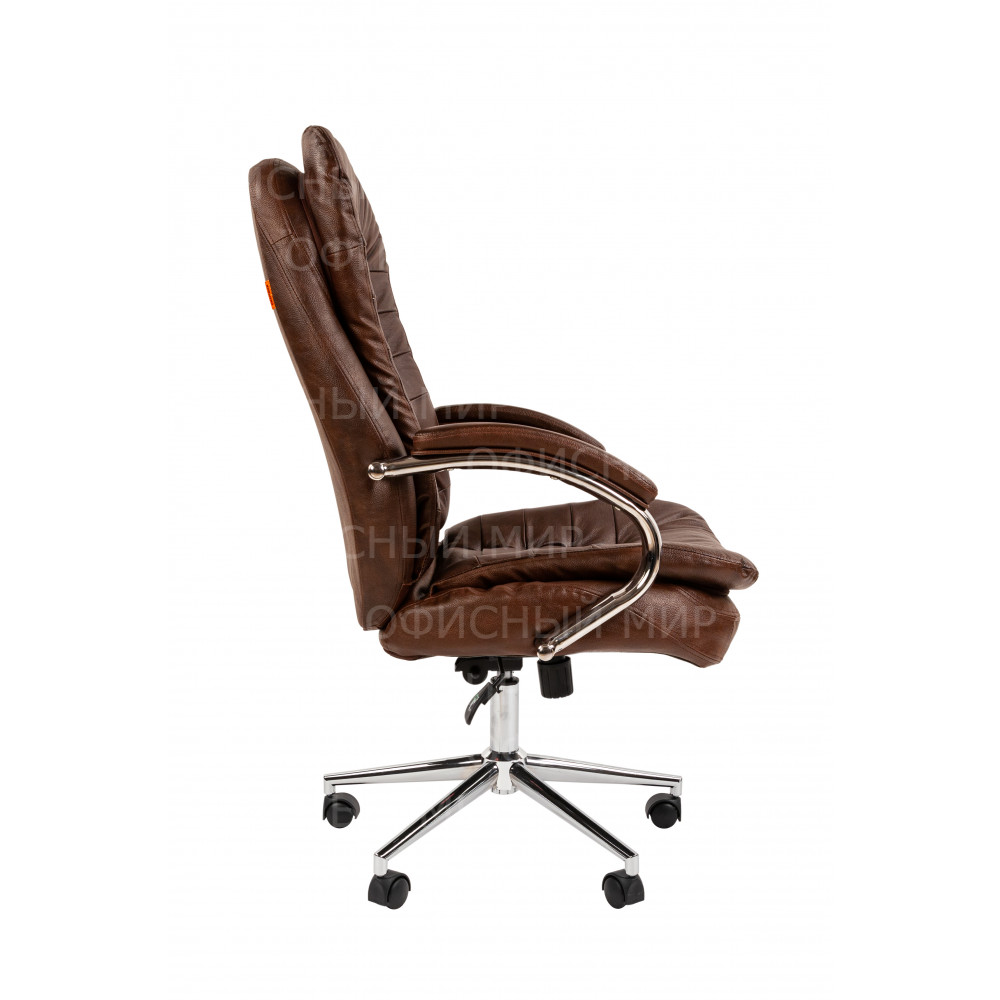 Элегантное и современное кресло для руководителя подходит для большинства интерьеров. Мягкие, округлые формы, эффектный хромированный металл и натуральная кожа придают креслу статусный внешний вид. Эргономичная форма и дополнительные подушки сиденья и спинки обеспечивают удобную посадку. Кресло оснащено механизмом качания с возможностью фиксации в любом положении, что позволяет настроить кресло в нужный режим для работы или отдыха. Обивка кресла выполнена из натуральной кожи на лицевых поверхностях сиденья и спинки в сочетании с экокожей на боковых и задних поверхностях.