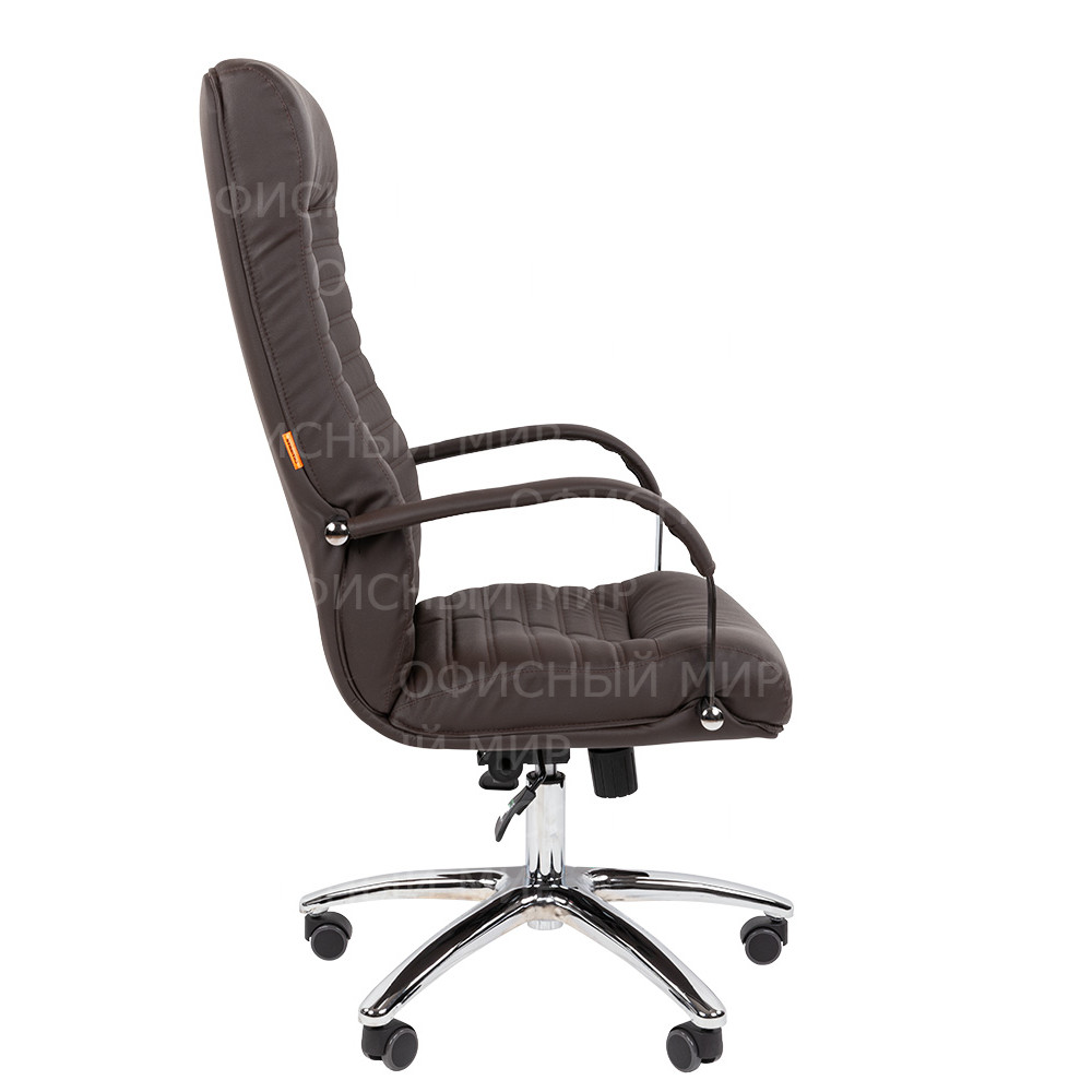 Стильное, необычное кресло руководителя. Его горизонтальный геометрический рисунок эффектно оттеняется хромированными элементами конструкции, а высокая эргономика достигается за счет анатомической формы и механизма качания повышенной комфортности.