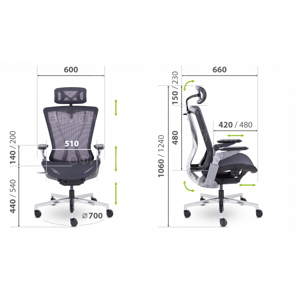 ✓ Подлокотники трансформеры 6D с мягкими полиуретановыми накладками регулируются по высоте и поворачиваются на 180 градусов в разные стороны.
