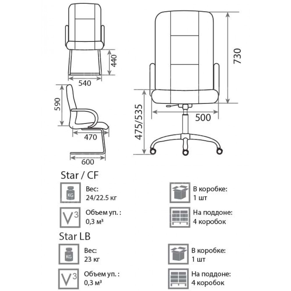 Кресло руководителя Star steel chrome, PU01 Экокожа, цвет черный
