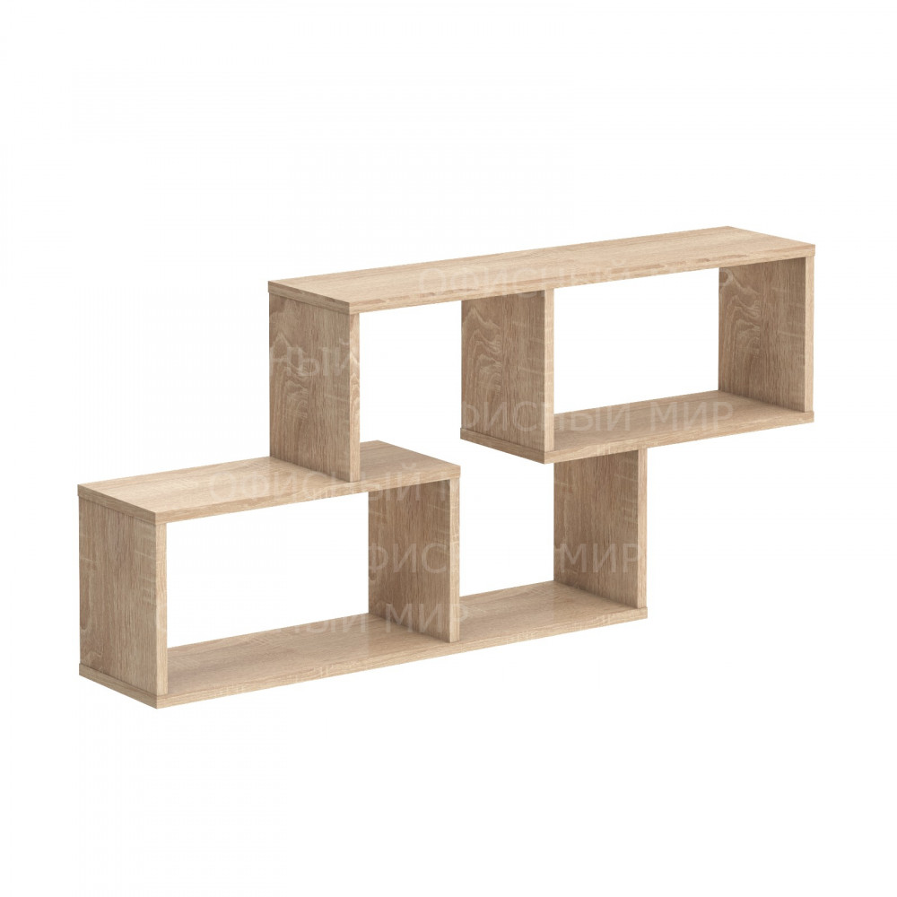 Оригинальная навесная полка KANN. Предназначена для крепления к стене. Размеры - 1100х500х200 мм, цвет – Дуб Сонома Светлый. Полка выполнена из ЛДСП 25 мм, что придает ей прочность и надежность. Оснащена 3 просторными нишами. Все торцы основных элементов надежно защищены кромкой ПВХ – 2 мм. Конструкция имеет солидные и долговечные крепления.