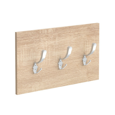 Компактная вешалка панель для прихожей KANN для офисного или домашнего использования. Размеры - 500х300х95 мм, цвет – Дуб Сонома Светлый. Выполнена из ЛДСП, что придает ей прочность и надежность. Вешалка оснащена 3 двойными крючками. Все торцы основных элементов кровати надежно защищены кромкой ПВХ – 2 мм.