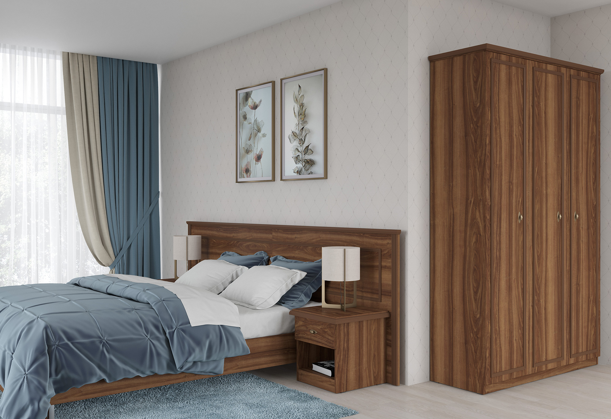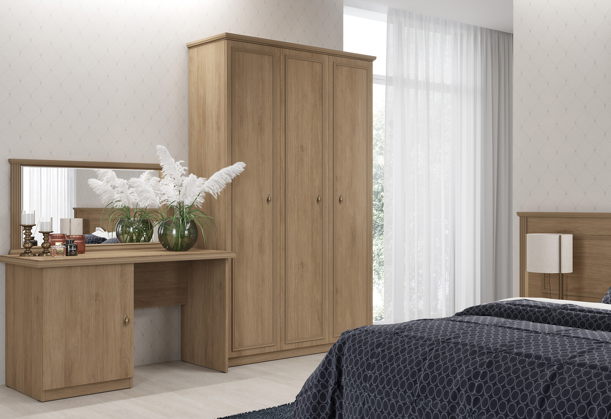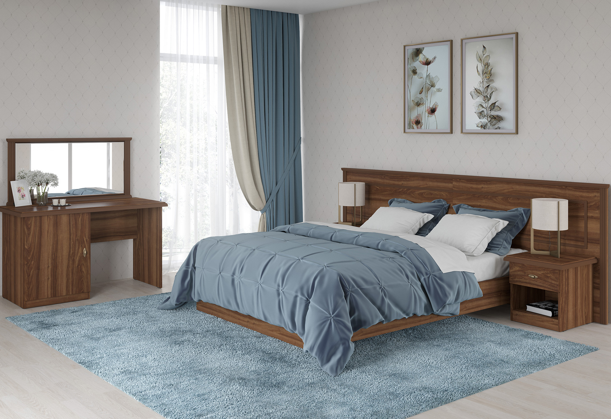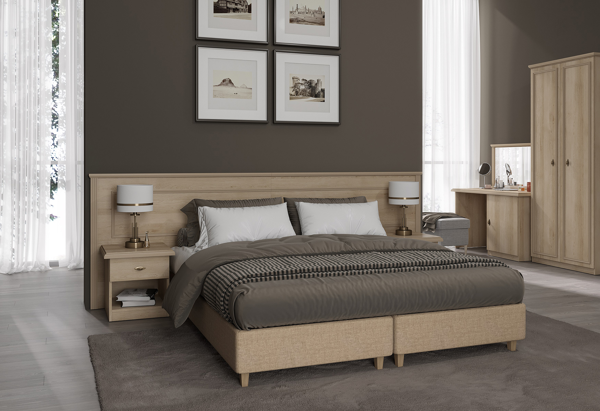 MUAR включает всё необходимое для обстановки гостиничного номера: кровати, шкафы, тумбы, туалетные столики и зеркала.