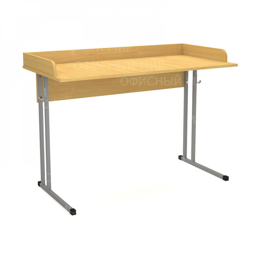 Стол ученический с бортиком не регулируемый по высоте имеет функциональную практичную конструкцию, что служит важным подспорьем в учебном процессе. Его конструкция рассчитана в соответствии с эргономичными требованиями, благодаря чему заниматься за ним удобно и комфортно. Каркас изготовлен из металлической трубы квадратного сечения 20х20 мм, с полимерно-порошковой окраской в светло-серый цвет, имеет 2 крючка.