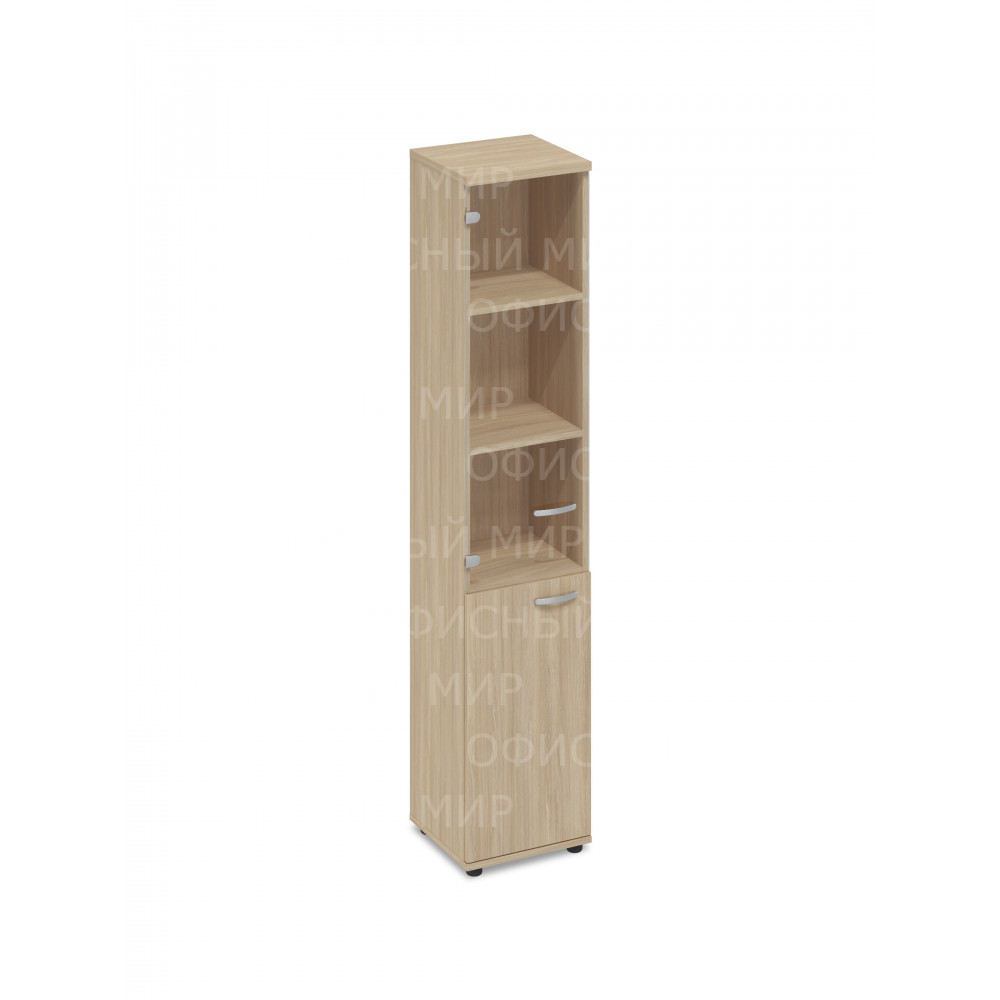 Шкаф для документов узкий со стеклянной прозрачной дверью дуб скандинавский А4 9479 ДК