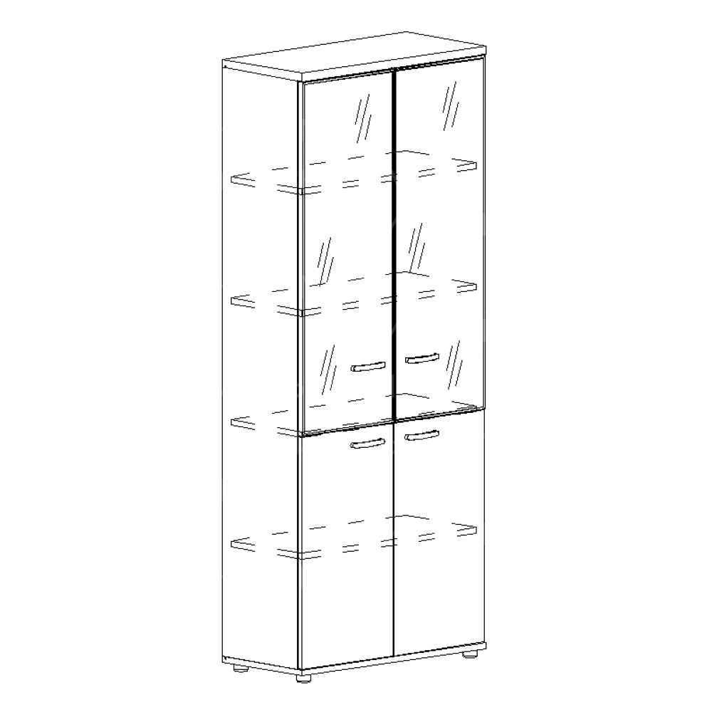 - Шкаф укомплектован двумя стеклянными дверями и двумя дверями из ЛДСтП без замков.