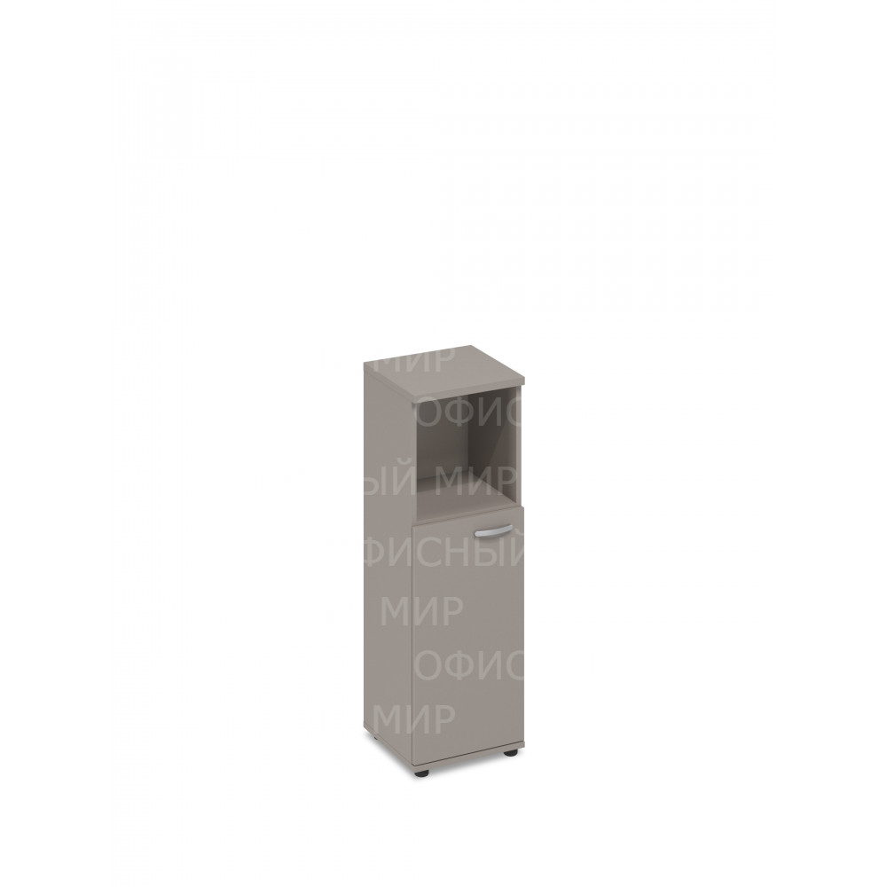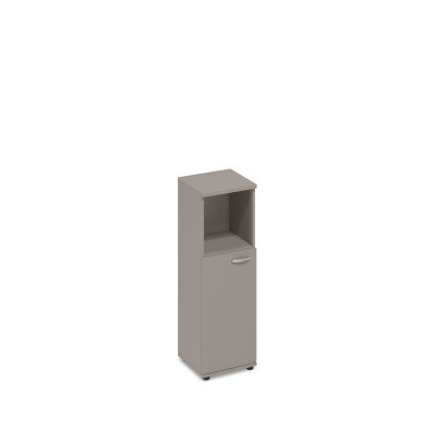 Шкаф средний узкий с открытой верхней полкой и дверцей в нижней.