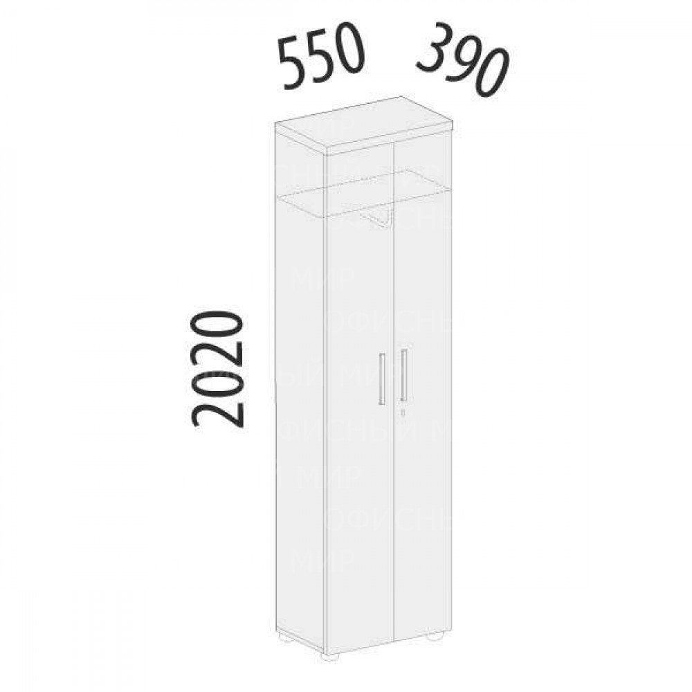 Шкаф для одежды со штангой «Альфа 63.43» является частью модульного набора мебели для офиса «Альфа». В верхней части шкафа размещена полка. Замок обеспечивает безопасное хранение вещей. Регулируемые по высоте ножки компенсируют возможные неровности пола. Металлические ручки подчеркивают современный дизайн модели.