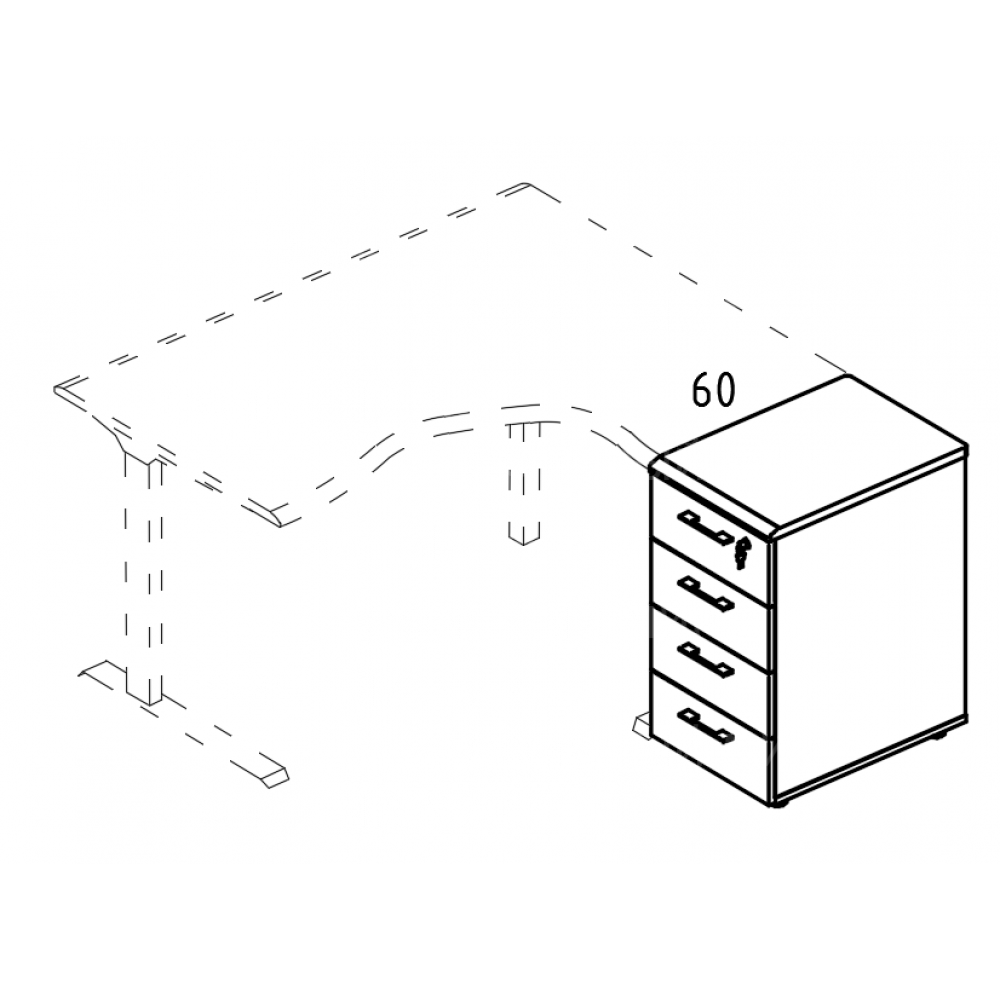 Тумба приставная 4 ящика с замком (1 скос) МР 9224 ВЛ/ВЛ/ВЛ вяз либерти/вяз либерти/вяз либерти