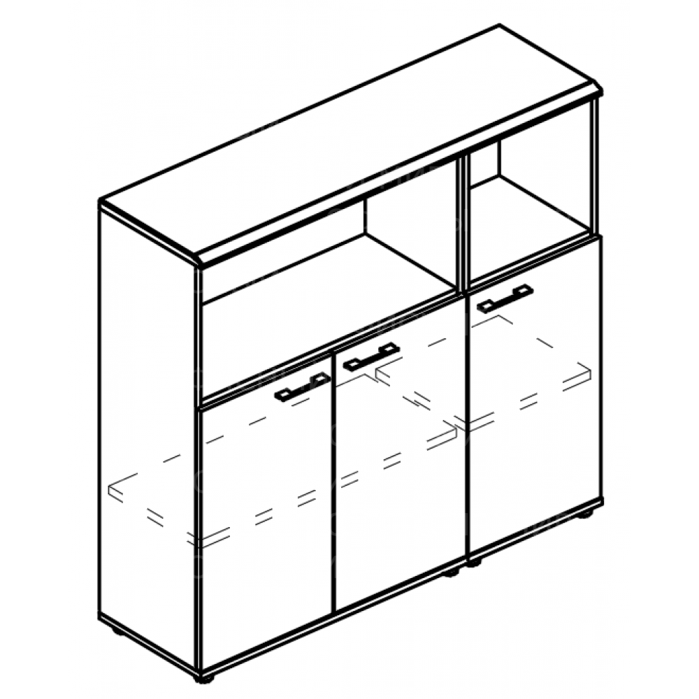 • Изделие является стенкой из широкого и узкого полузакрытых шкафов для документов под общим топом