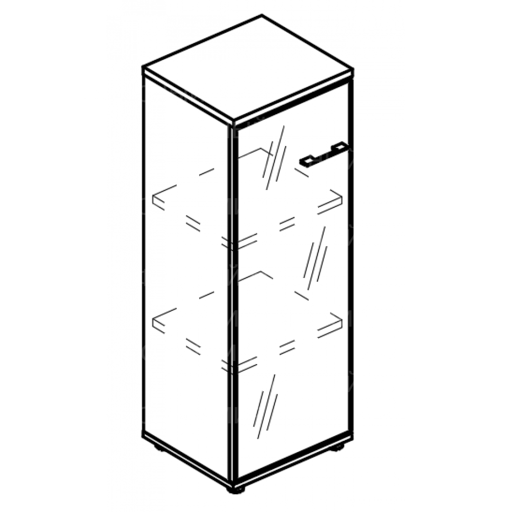 Шкаф средний узкий со стеклянной дверью в алюминиевой рамке левый (топ ДСП).