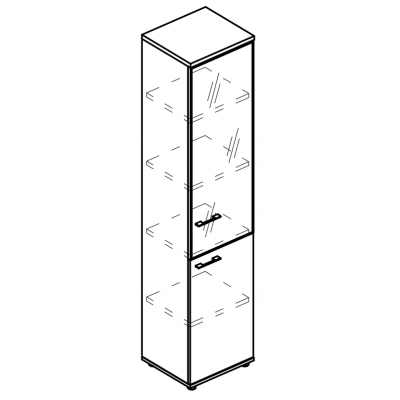 • Шкаф укомплектован одной стеклянной дверью в алюминиевой рамке и одной дверью из ЛДСтП без замков