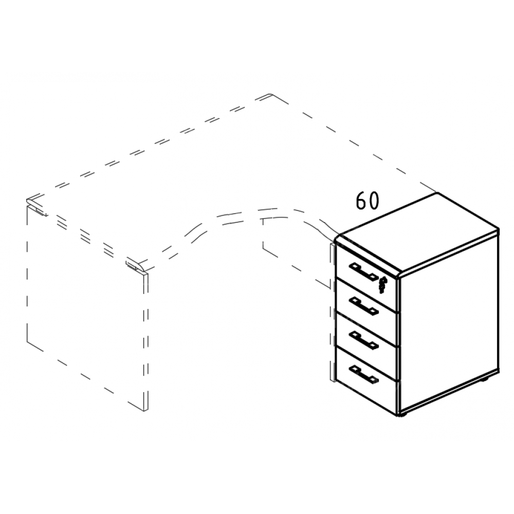 Тумба приставная 4-х ящичная с замком (1 скос) для стола эргономичного.