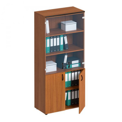 • Шкаф укомплектован двумя дверями из ЛДСтП и двумя стеклянными дверями без замка