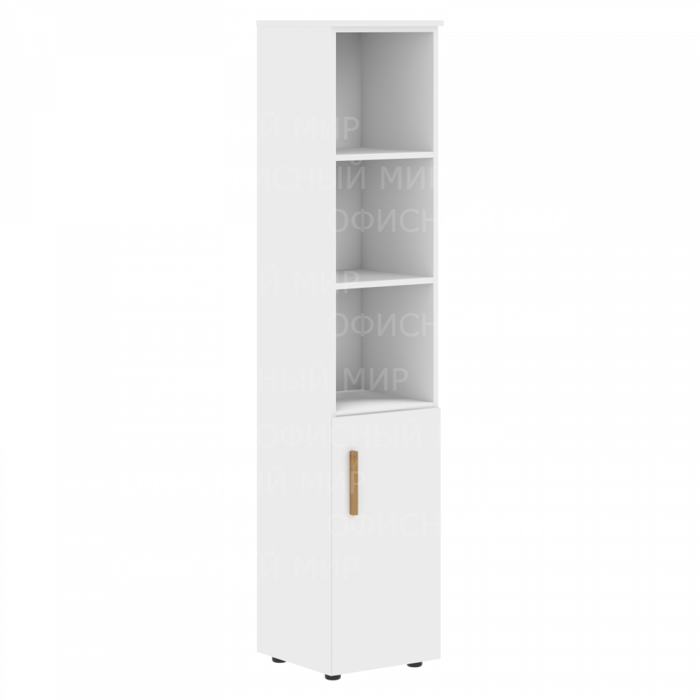Шкаф колонка с глухой малой дверью FHC 40.5L Белый серия FORTA. Стеллажи из ЛДСП т.18мм с кромками ABS т.0,45мм, с задней стенкой из ДВП т.3мм в цвет каркаса, комплектуется регулируемыми опорами 50х27 мм черного цвета. Стеллаж высокий комплектуется уголками для крепления к стене.