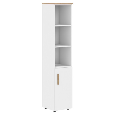 Шкаф колонка с глухой малой дверью (R) и топом FHC 40.5(R) Белый премиум/Дуб Гамильтон 404х429х1983