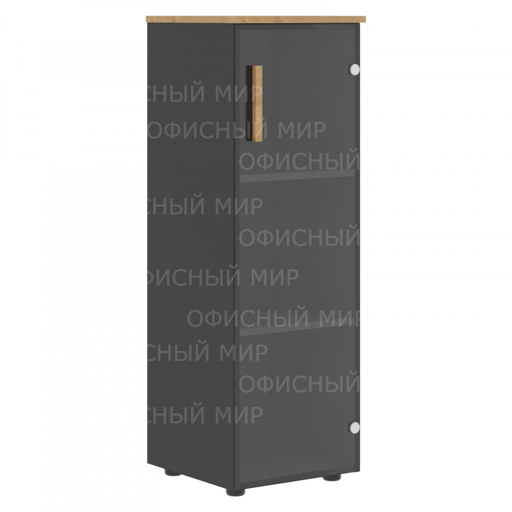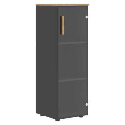 Шкаф колонка с стеклянной дверью и топом FMC 40.2 Прозрачное/Черный графит/Дуб Гамильтон 404х429х121