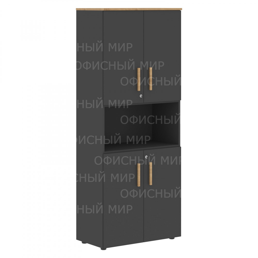 Шкаф с 2-мя комп-ми малых дверей и топом FHC 80.4(Z) Черный графит/Дуб Гамильтон 802х429х1983 FORTA