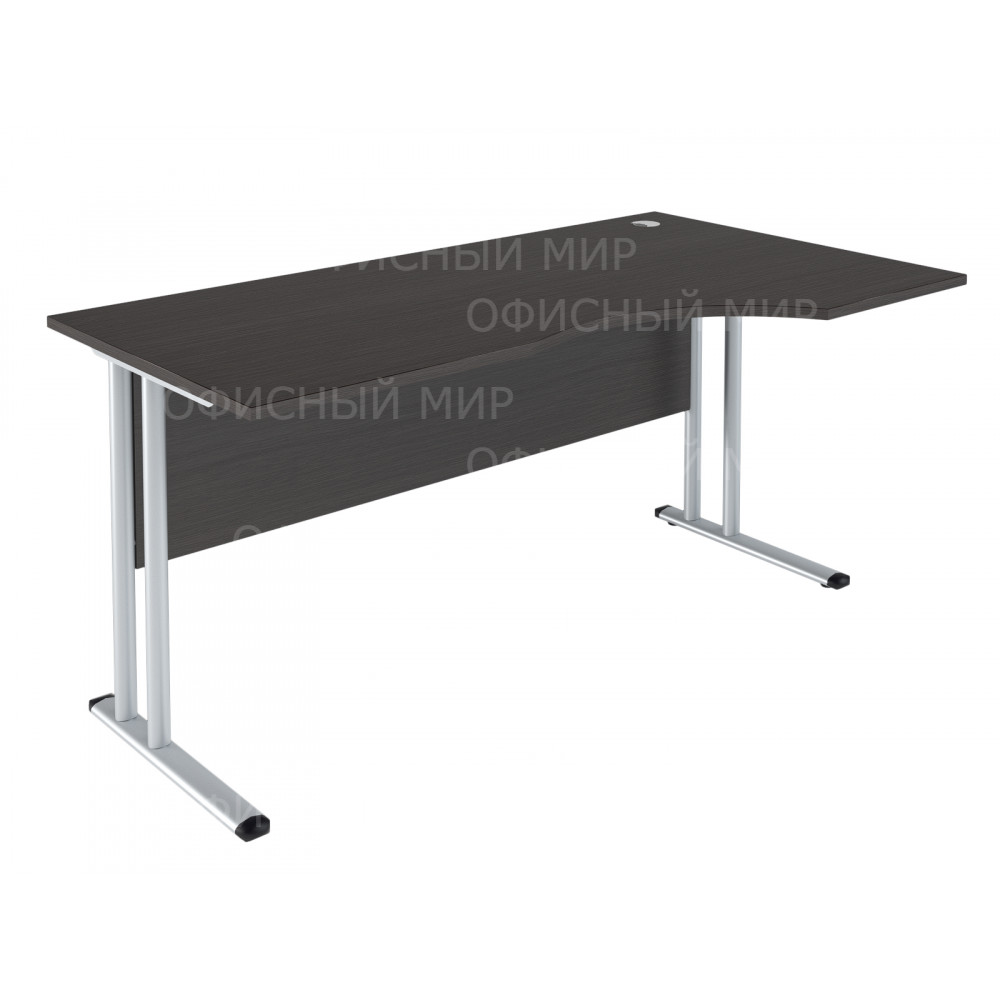 Большой рабочий стол IMAGO эргономичной формы на металлических опорах, идеально вписывающийся в офисные и домашние рабочие зоны, размер –1600x900x747 мм, тип - правосторонний; цвет - Венге Магия. Солидная и прочная столешница 22 мм, надежная защита торцевых поверхностей – кромка ПВХ 2 мм, возможность регулировки по высоте для неровных полов.
