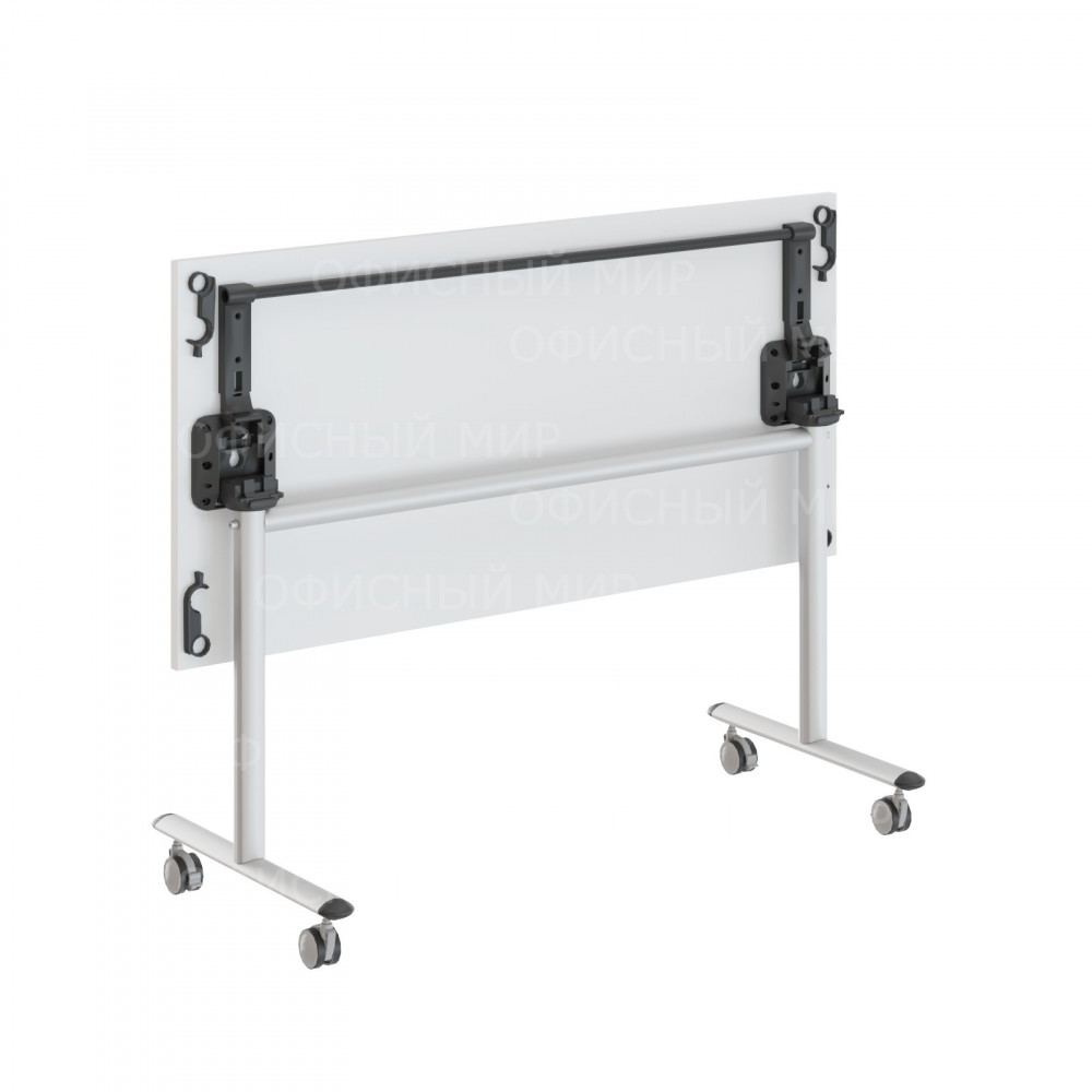 Столешница из ЛДСП т.22мм с кромкой ПВХ т. 2мм по периметру, без кабель-каналов. Металлокаркас из двух Т-образных опор на колесах со стоппером. Механизм трансформации/складывания изготовлен из стеклонаполненного полиамида с металлическими пружинами.