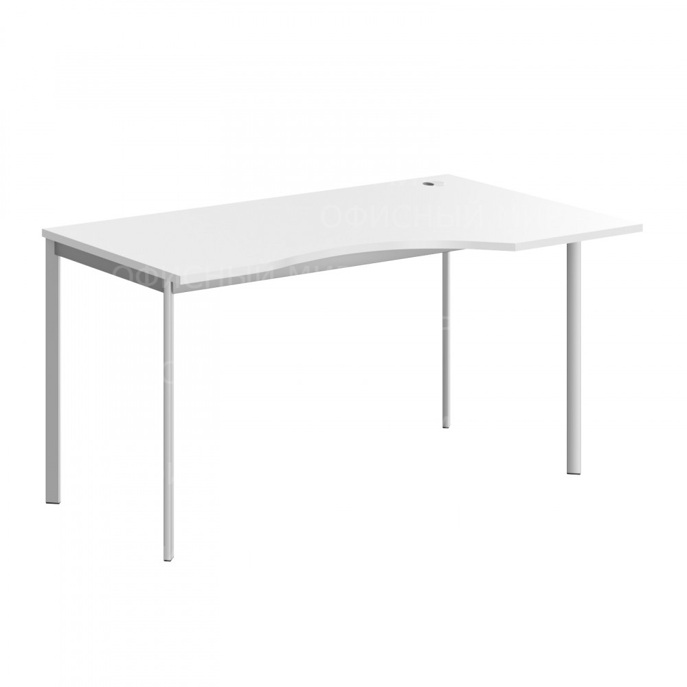 Универсальный эргономичный стол IMAGO-S для офисного или домашнего использования, размер - 1400х900х755 мм, тип – правосторонний, цвет – Белый, цвет опор – Алюминий Матовый. Оснащен устойчивым и долговечным П-образным металлокаркасом типа «Бенч». Солидная и прочная столешница 22 мм, надежная защита торцов всех элементов - кромка ПВХ 2 мм, регулировка по высоте для неровных полов.